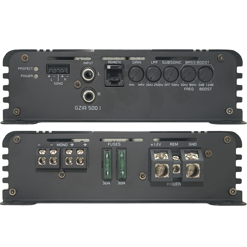 1-channel subwoofer amplifier with class D circuit and integrated active crossover
