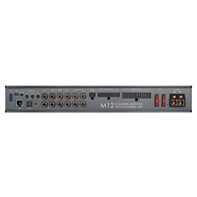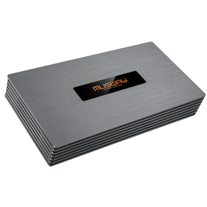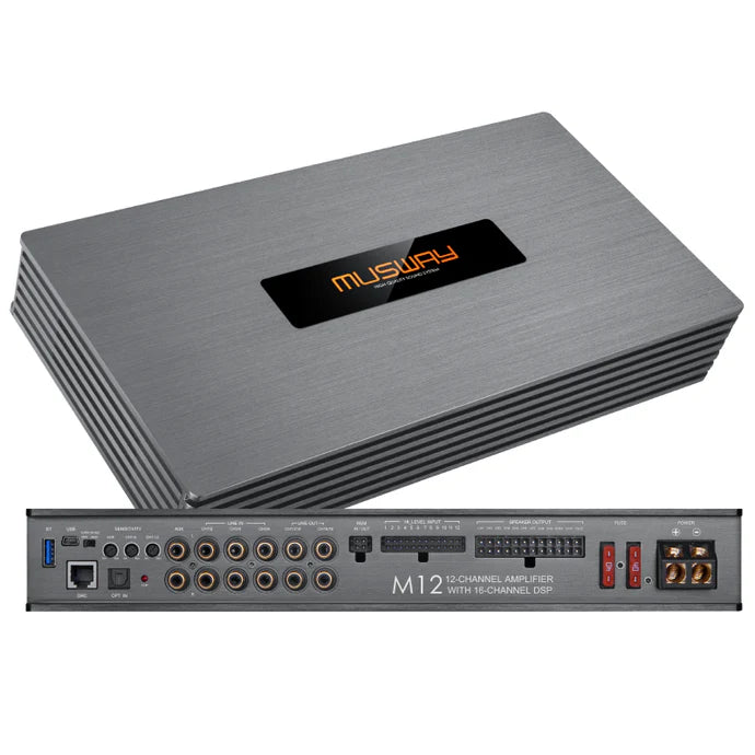 MUSWAY is particularly known for building elegant and well-thought-out DSP amplifiers that can be controlled via a smartphone app and beautiful designs. The new M12 joins this tradition with an impressive number of 12 Class-D channels and an integrated 16-channel DSP. It appeals to those hi-fi fans who want to be able to individually tune their complex loudspeaker system in the vehicle for the best possible playback and at the same time be able to control it easily without complex cabling or the installation of several devices.